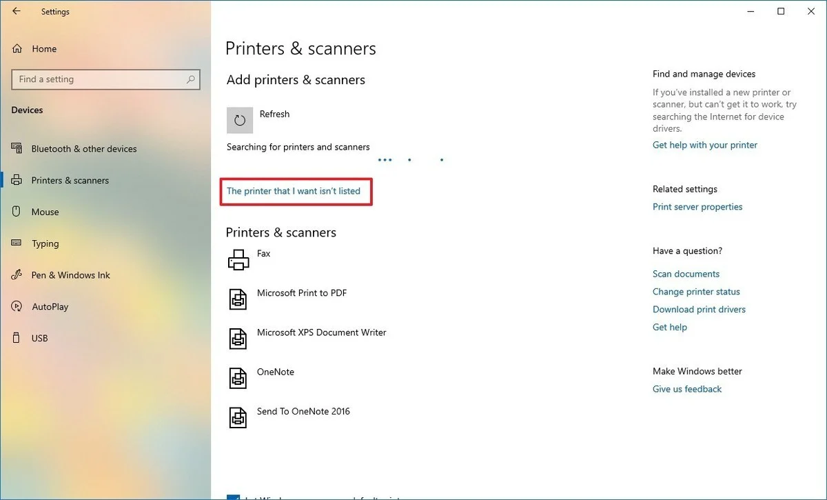 How to add the Xavier CET Office Photocopier to a Windows 10 laptop? Click on the Start button in the bottom left corner of your screen Click on the Settings cog, usually above the power button Click on Devices Click on Printers & scanners Click on the "Add a printer or scanner"button Wait a few moments Click on the "The printer that I want isn't listed" button In the Add Printer pop-out window, choose the option labelled "Add a printer using a TCP/IP address or hostname" and click on Next In the hostname field, enter 172.17.14.95 then click on Next Wait a few moments for the computer to detect the TCP/IP port The next option is to name the printer, we recommend naming the printer "Xavier Office Toshiba" and then click Next On the printer sharing page, please press Next to skip sharing Finally, press Finish to complete the setup
